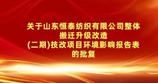 關(guān)于山東恒泰紡織有限公司整體搬遷升級(jí)改造 (二期)技改項(xiàng)目環(huán)境影響報(bào)告表的批復(fù)