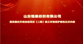 山東恒泰紡織有限公司整體搬遷升級(jí)改造項(xiàng)目(二期)竣工環(huán)境保護(hù)驗(yàn)收公示內(nèi)容